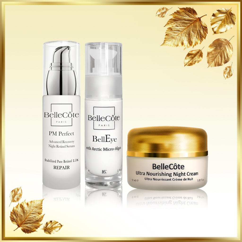 Turn sleep into skincare.  Let PM Perfect kickstart repair, Ultra Nourishing Night Cream boost cellular renewal, and BellEye Arctic Eye Cream target puffiness, dark circles, and fine lines. Sheer luxury your skin craves.